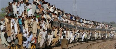Pilgrims cling on to a departing train after attending an annual religious congregation in Multan on November 2. The annual three-day Dawat-e-Islami congregation concluded with collective noon prayers. via: rediff.com